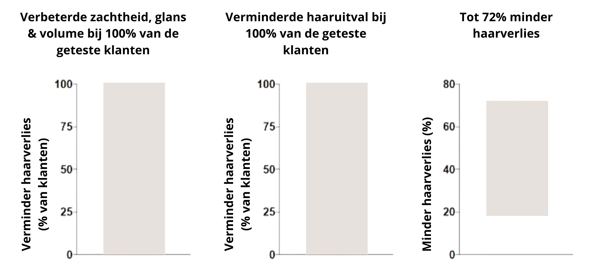 Uit tests blijkt dat haaruitval tot 72% vermindert, met merkbare verbeteringen na slechts 10 dagen.